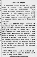 The Free Negro A newspaper article discussing the education status of freed black people in Texas in 1911.