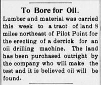 Post-Signal April 26, 1912 Page 5 Newspaper clipping from the Post-Signal in Pilot Point, Texas. It discusses the beginning of construction of an oil derrick outside of town, it is hoped that oil will be found there.