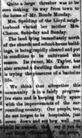 Post Mirror February 11, 1888 Page 6 Clipping from the Post-Mirror in Pilot Point, Texas. Discusses the arrival of a large thresher to the Bonds farm. Additionally it discusses the progress of Pilot Point’s development and how the editors are pleased with it.