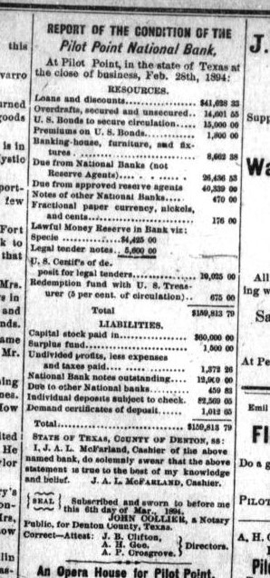Moffitt, D. J. The Post-Mirror. (Pilot Point, Tex.), Vol. 7, No. 6, Ed. 1 Friday, March 9, 1894, newspaper, March 9, 1894; Pilot Point, Texas. (texashistory.unt.edu/ark:/67531/metapth984579/: accessed April 4, 2018 ),University of North Texas Libraries, The Portal to Texas History, texashistory.unt.edu; .