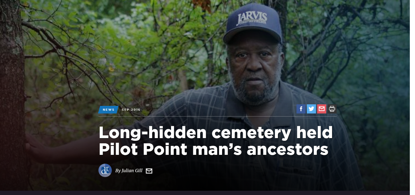 Hudspeth and a group of volunteers have been working to clear the site, once completely covered by thorny brush, for two hours every Saturday. Denton County recently set aside about $20,000 to help revitalize the cemetery, and county workers are expected to take over the cleanup effort in about two weeks.