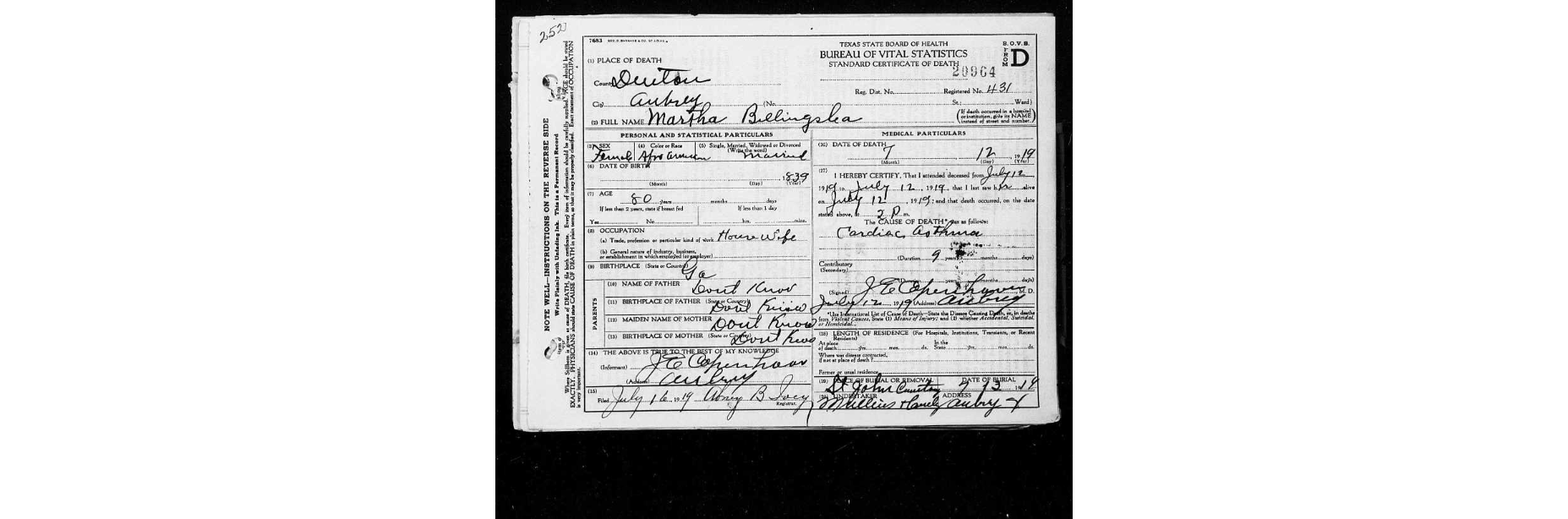 - Ancestry.com. Texas, Death Certificates, 1903-1982 [database on-line]. Provo, UT, USA: Ancestry.com Operations, Inc., 2013.