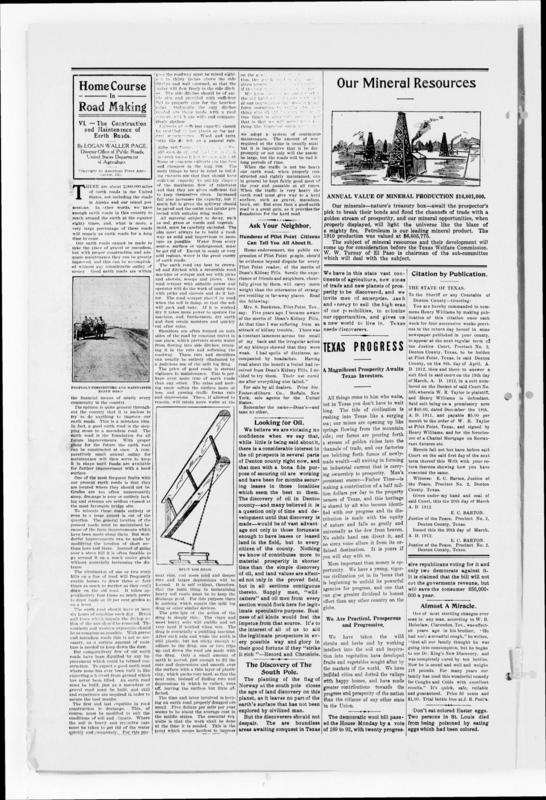 The Post-Signal (Pilot Point, Tex.), Vol. 34, No. 33, Ed. 1 Friday, April 12, 1912,newspaper, April 12, 1912; Pilot Point, Texas. (texashistory.unt.edu/ark:/67531/metapth291212/: accessed April 14, 2018),University of North Texas Libraries, The Portal to Texas History, texashistory.unt.edu; crediting Denton Public Library.