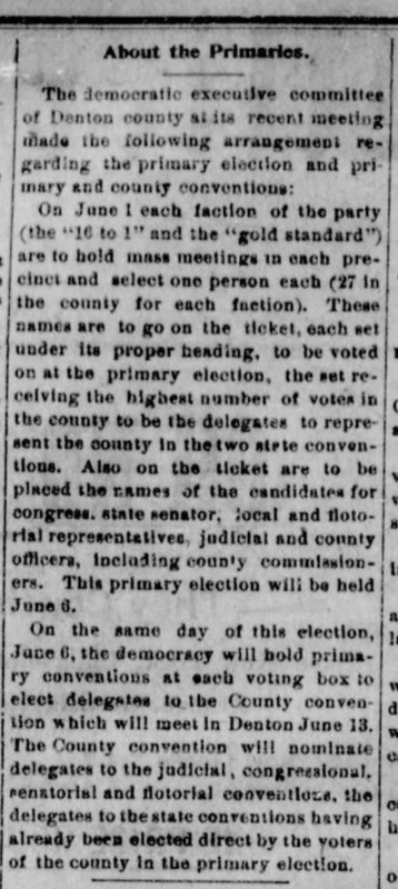 Moffitt, D. J. The Post Mirror. (Pilot Point, Tex.), Vol. 9, No. 9, Ed. 1 Friday, March 27, 1896, newspaper, March 27, 1896; Pilot Point, Texas. (texashistory.unt.edu/ark:/67531/metapth982615/: accessed April 13, 2018), University of North Texas Libraries, The Portal to Texas History, texashistory.unt.edu; .