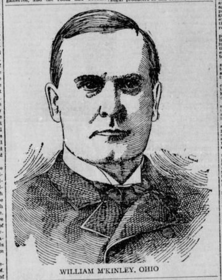Newspaper page from the Post-Mirror in Pilot Point, Texas. It includes a sketch of presidential candidate William McKinley.