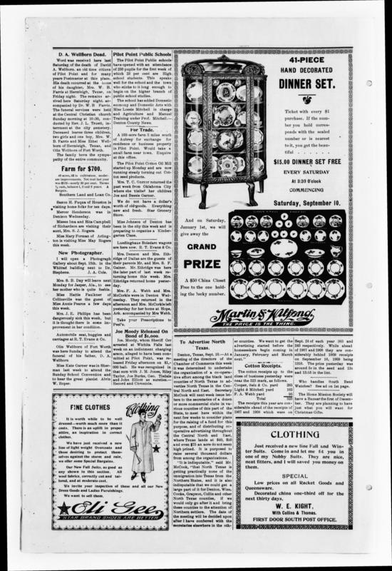 The Post-Signal (Pilot Point, Tex.), Vol. 33, No. 3, Ed. 1 Friday, September 16, 1910, newspaper, September 16, 1910; Pilot Point, Texas. (texashistory.unt.edu/ark:/67531/metapth291134/m1/8/?q=post-signal%201910%20September: accessed April 13, 2018), University of North Texas Libraries, The Portal to Texas History, texashistory.unt.edu.