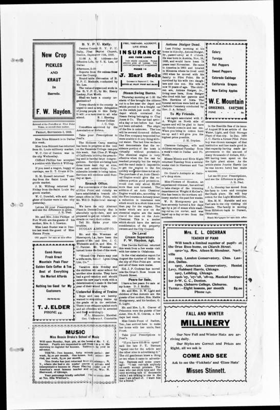 The Post-Signal (Pilot Point, Tex.), Vol. 33, No. 1, Ed. 1 Friday, September 2, 1910, newspaper,September 2, 1910; Pilot Point, Texas. (texashistory.unt.edu/ark:/67531/metapth291132/m1/5/?q=post-signal%20September%201910: accessed April 14, 2018), University of North Texas Libraries, The Portal to Texas History, texashistory.unt.edu.