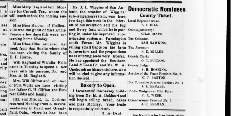 The Post-Signal (Pilot Point, Tex.), Vol. 33, No. 1, Ed. 1 Friday, September 2, 1910, newspaper,September 2, 1910; Pilot Point, Texas. (texashistory.unt.edu/ark:/67531/metapth291132/m1/8/?q=post-signal%20September%201910: accessed April 14, 2018), University of North Texas Libraries, The Portal to Texas History, texashistory.unt.edu.